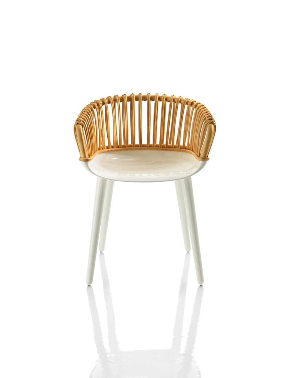 Sedia Cyborg Club, Magis. Policarbonato bianco e schienale midollino.